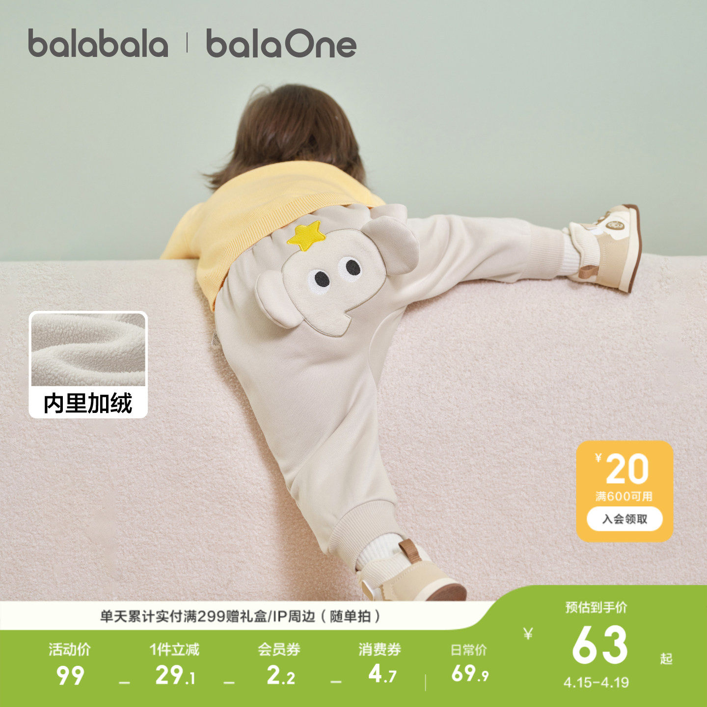 巴拉巴拉童装宝宝长裤儿童加绒裤子2026春装男女童婴儿保暖运动裤