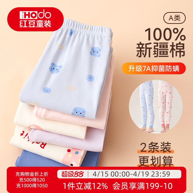 红豆儿童秋裤纯棉内穿男童女童保暖裤100%全棉大童打底线裤棉毛裤