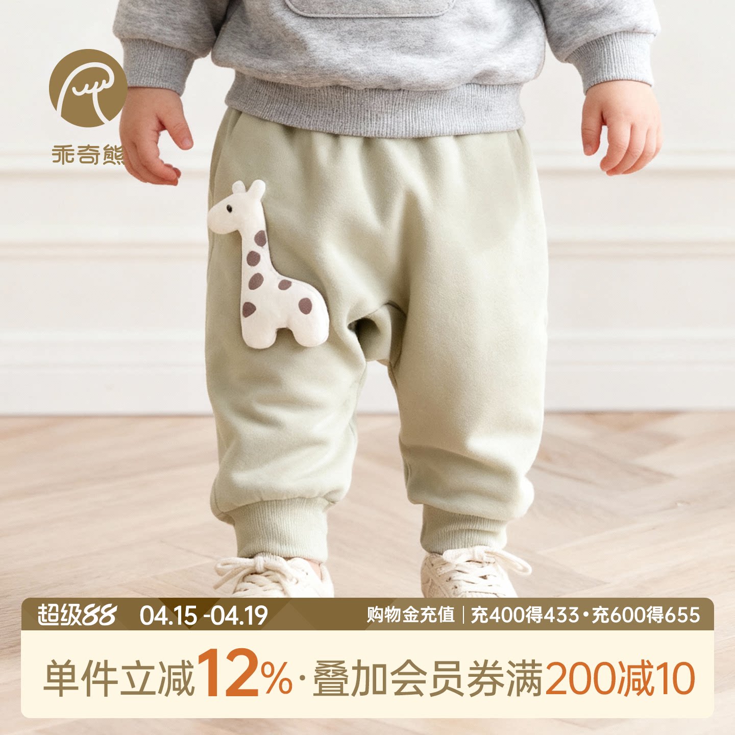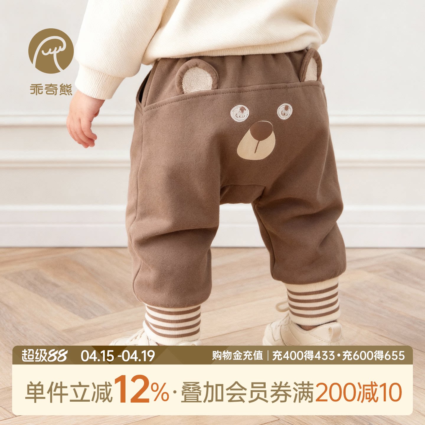 乖奇熊婴儿纯棉抓绒裤子宝宝休闲长裤春秋季哈伦裤大PP裤外出保暖