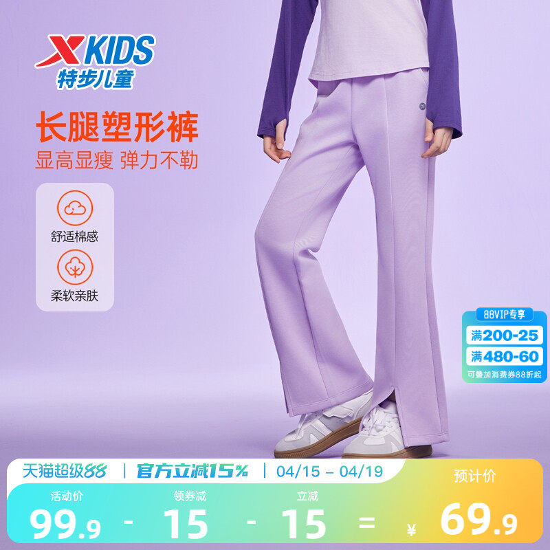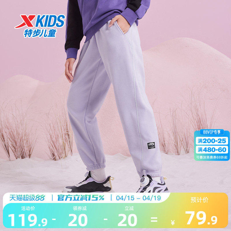 特步童装2026春秋新款儿童运动长裤女童大童保暖喇叭裤休闲裤子