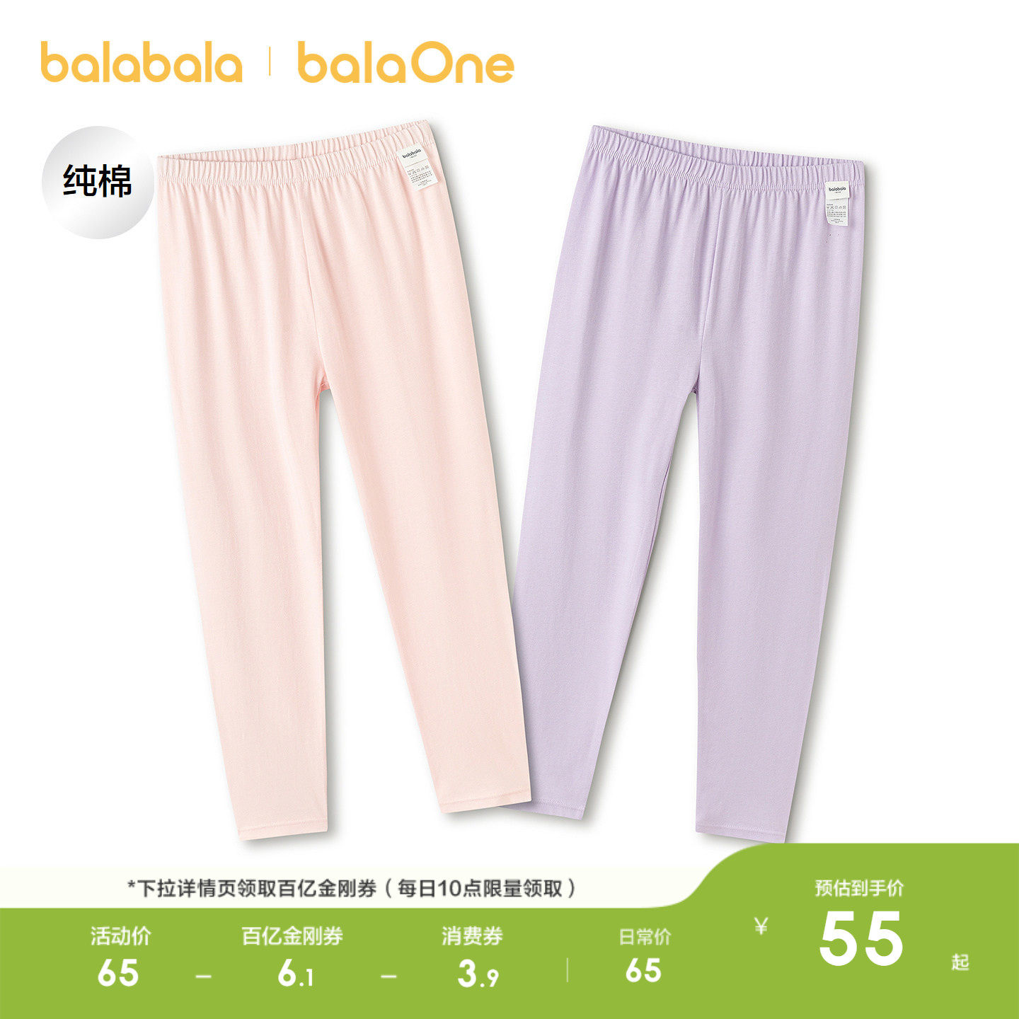 巴拉巴拉女童打底裤春季新款儿童睡裤纯棉中大童保暖裤亲肤两条装