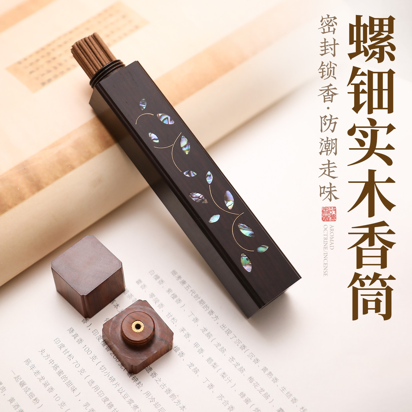 黑檀木香筒便携香盒螺钿木质储香盒香炉线香炉香插旅行装香盒定制
