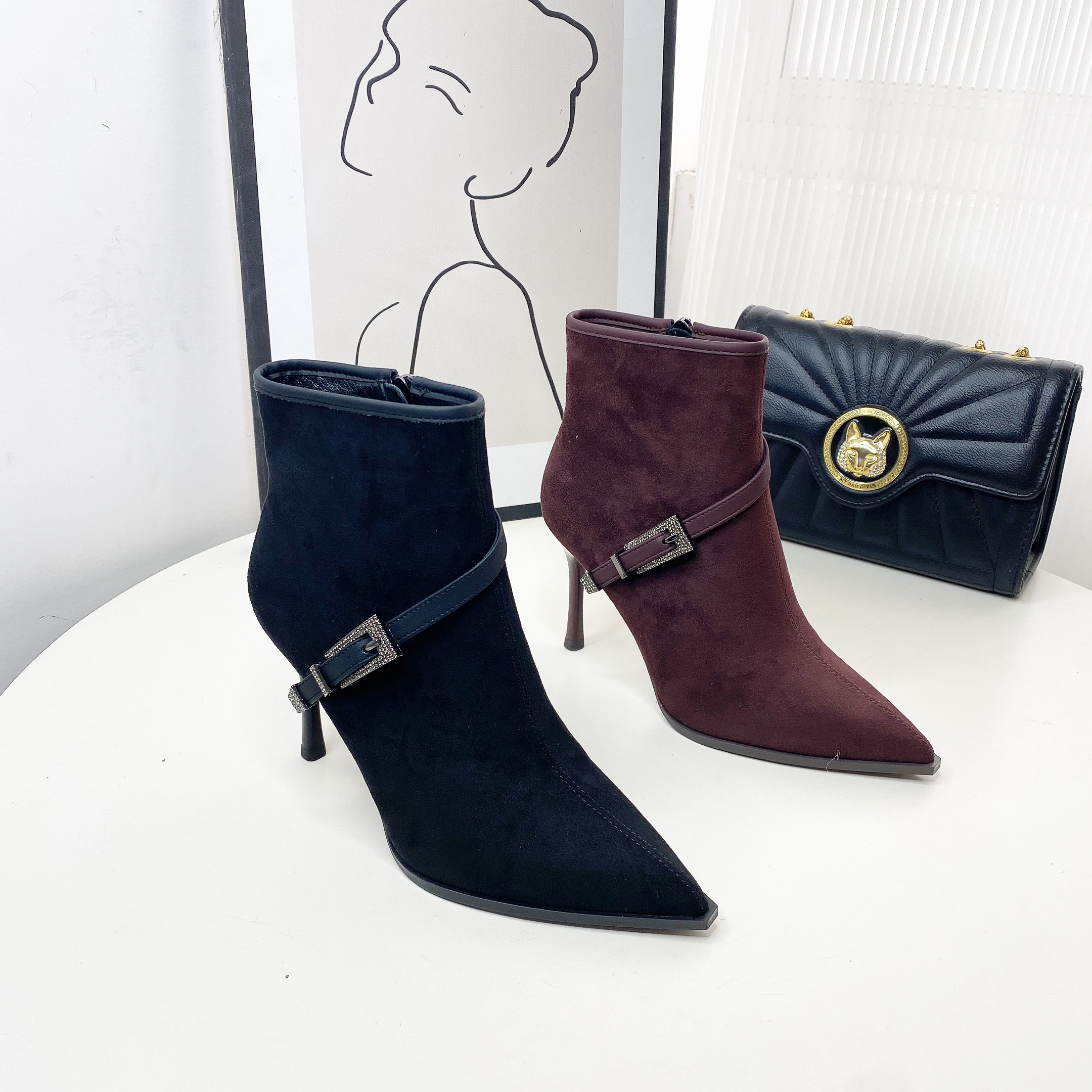 3776-5【7厘米】高跟短靴女秋冬时尚百搭单靴气质尖头细跟时装靴
