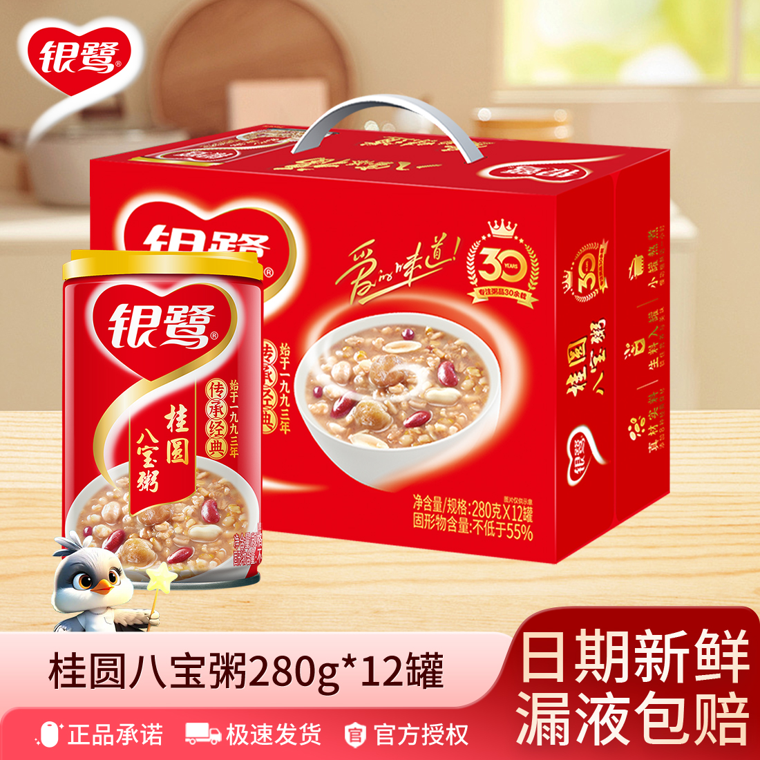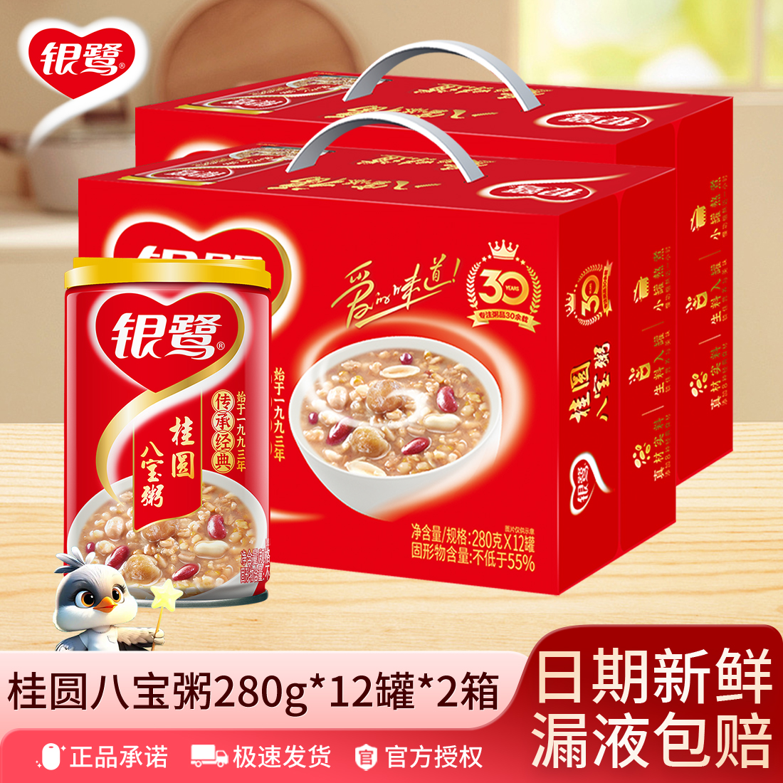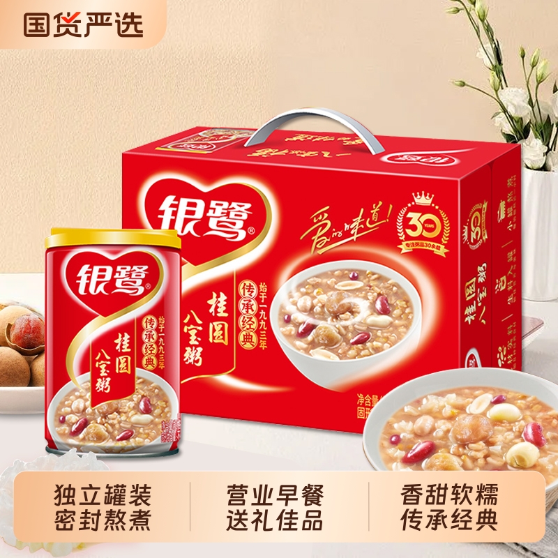 银鹭桂圆八宝粥280g*12罐整箱早餐夜宵营养杂粮速食粥礼品礼盒