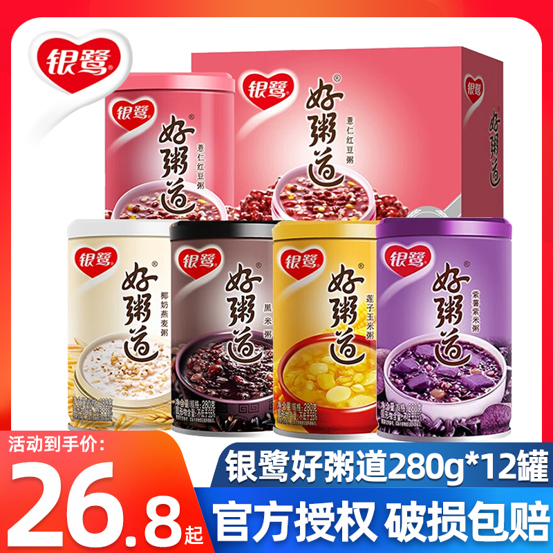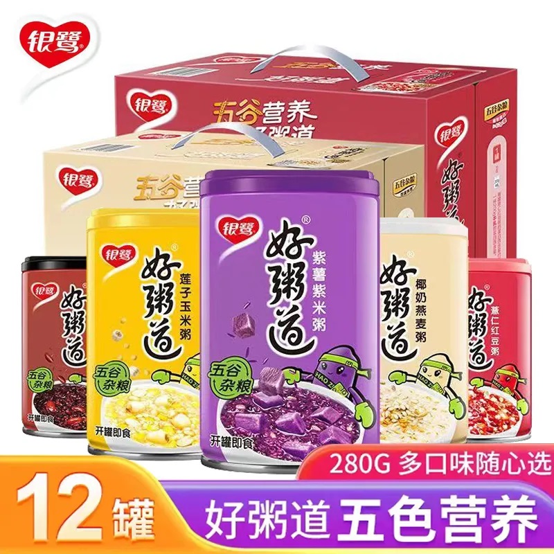 银鹭八宝粥好粥道280g*12罐整箱批发 黑米红豆燕麦紫薯多口味混装