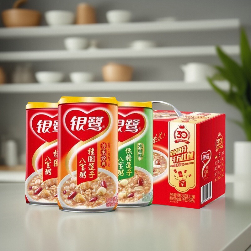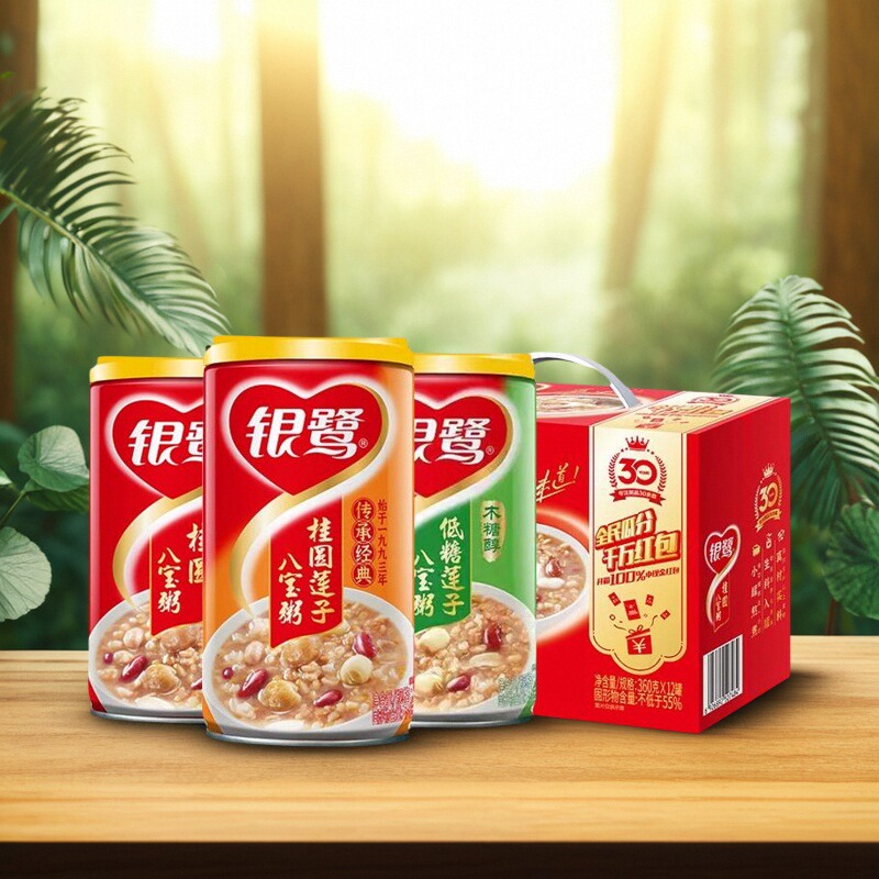 银鹭八宝粥桂圆莲子360g*12罐早餐速食粥五谷杂粮整箱装低糖大罐