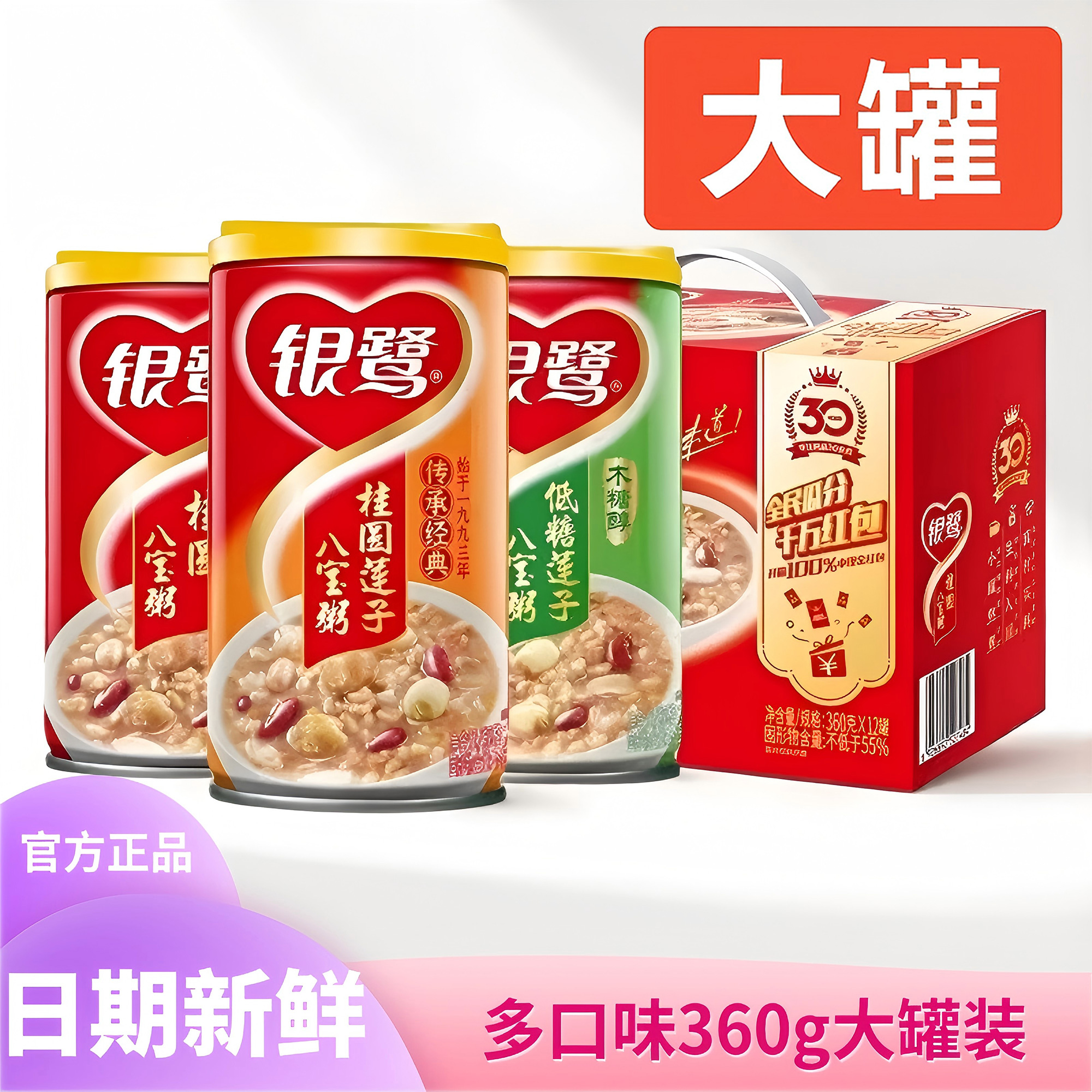 ¥银鹭八宝粥桂圆莲子低糖360g12罐整箱装6罐散装五谷杂粮营养早
