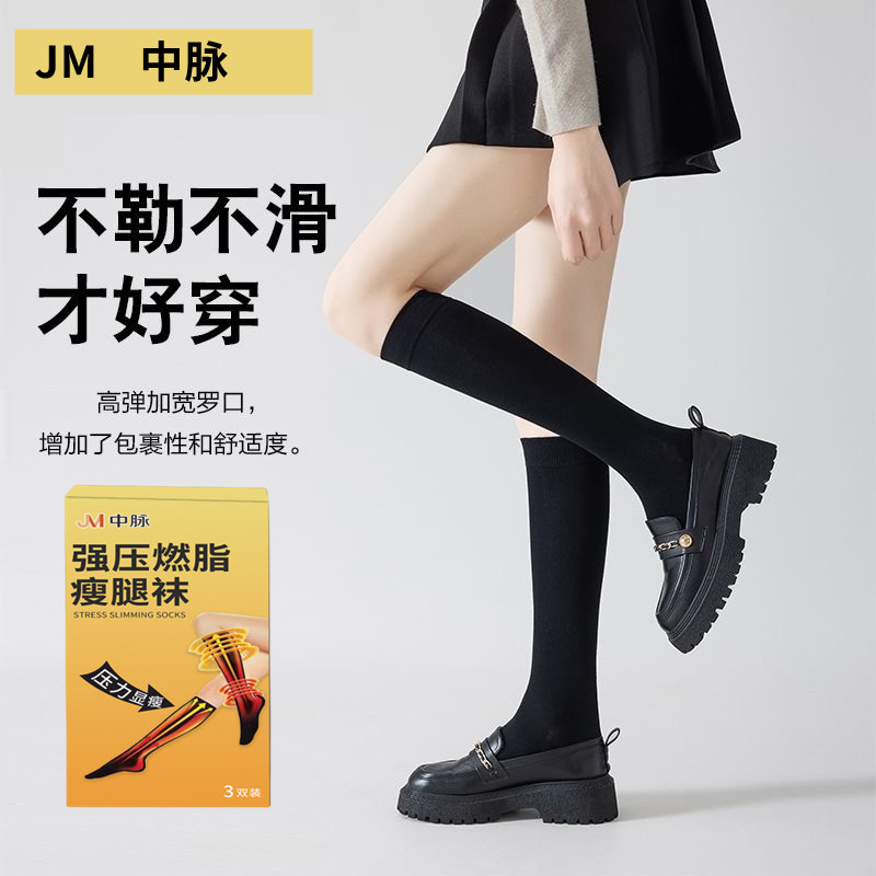 JM中脉强压燃脂瘦腿袜压力小腿袜女秋冬显瘦jk袜子黑色高筒长筒袜