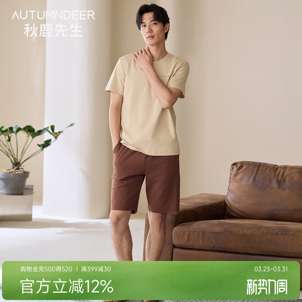 秋鹿先生柔软舒适莫代尔棉睡衣男2026夏季薄款印花短袖短裤家居服