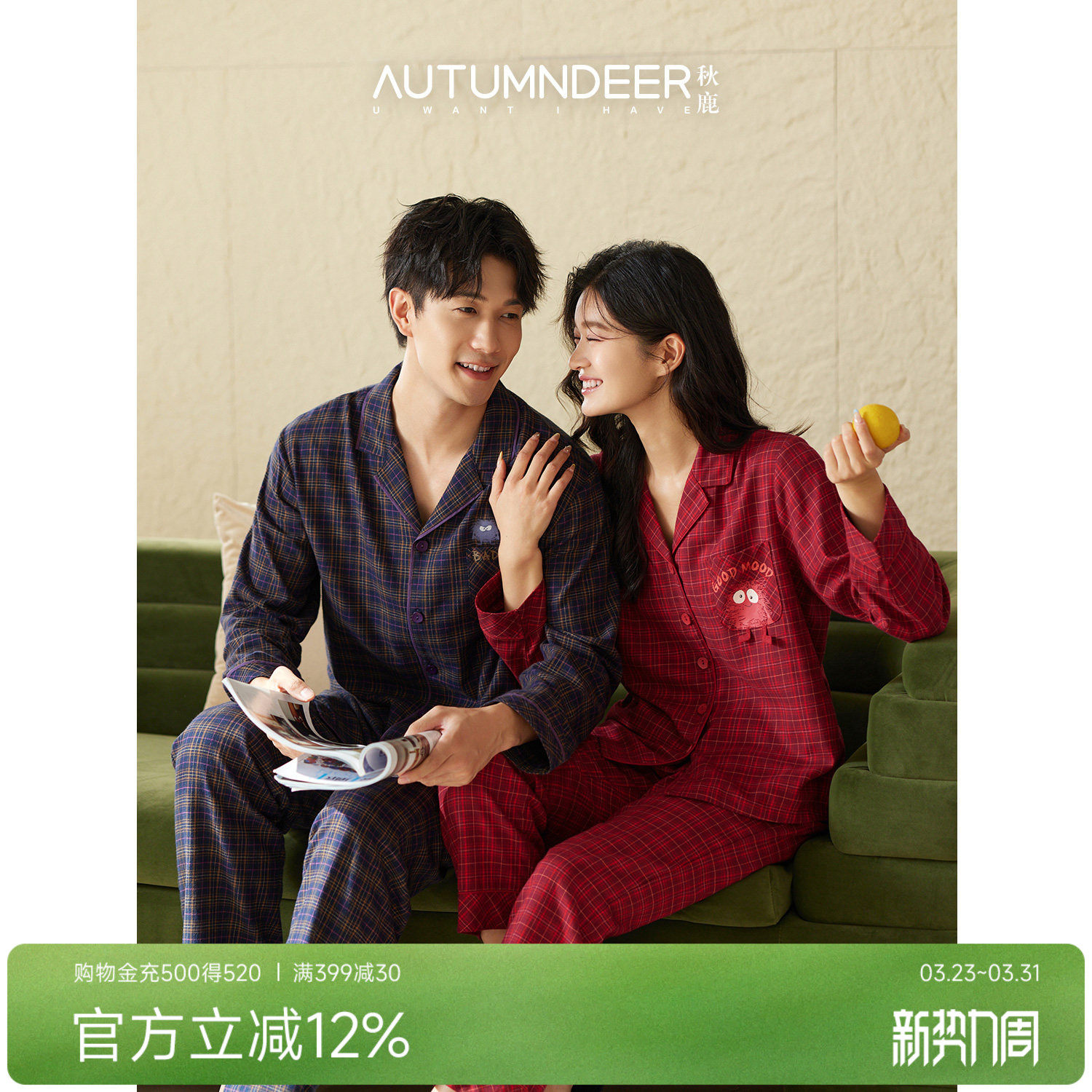 【清仓福利99元】秋鹿春秋季长袖长裤情侣睡衣女秋冬男中年家居服