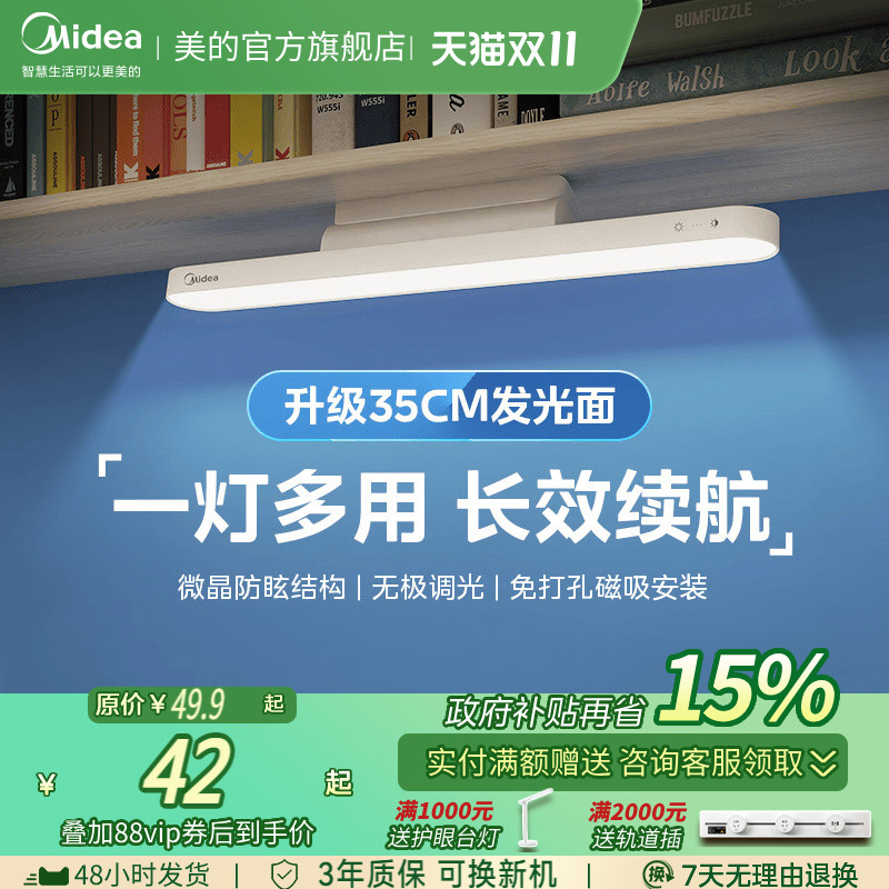 政府补贴15% 美的台灯护眼学习专用书桌磁吸灯酷毙灯宿舍吸附充电
