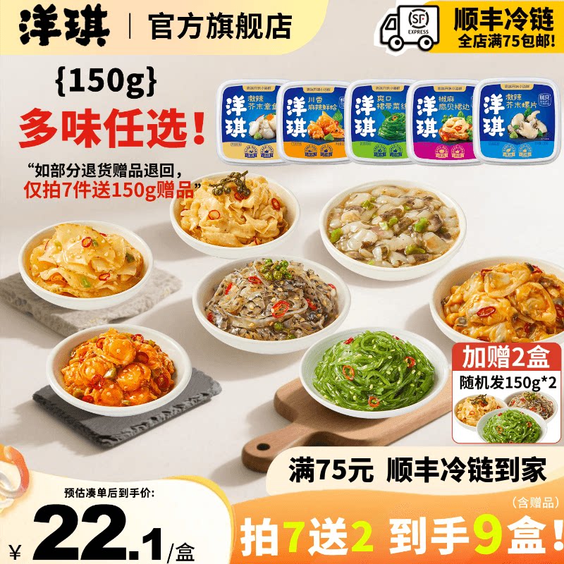 [199元到手9件]洋琪150g即食海鲜小菜麻辣鲜蛤芥末章鱼裙带菜蟹柳