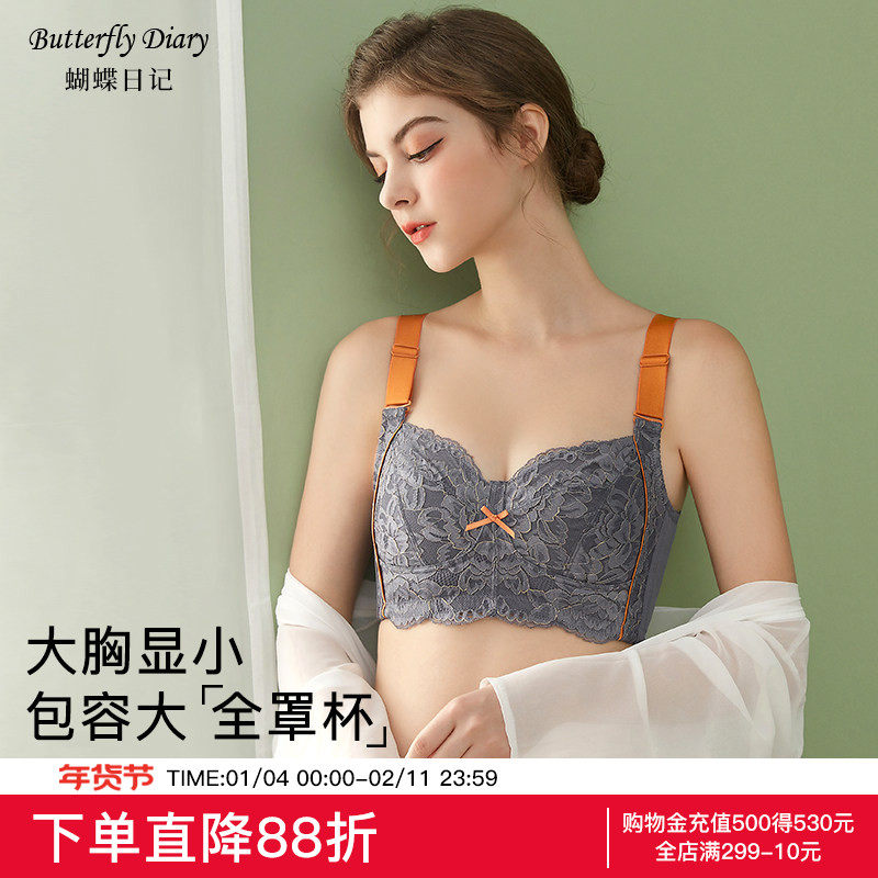蝴蝶日记大胸显小文胸薄款蕾丝bra本命年酒红色内衣女士蛇年套装