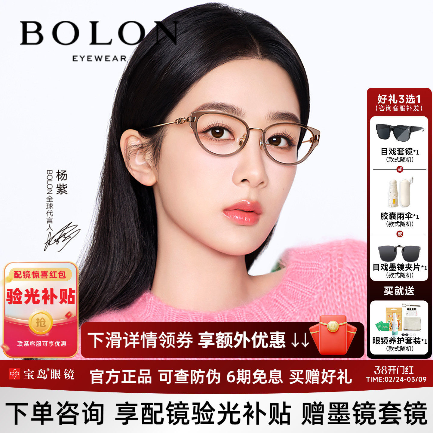 暴龙猫眼墨镜杨紫同款女士2026年新款偏光太阳眼镜BL3209 BL3208