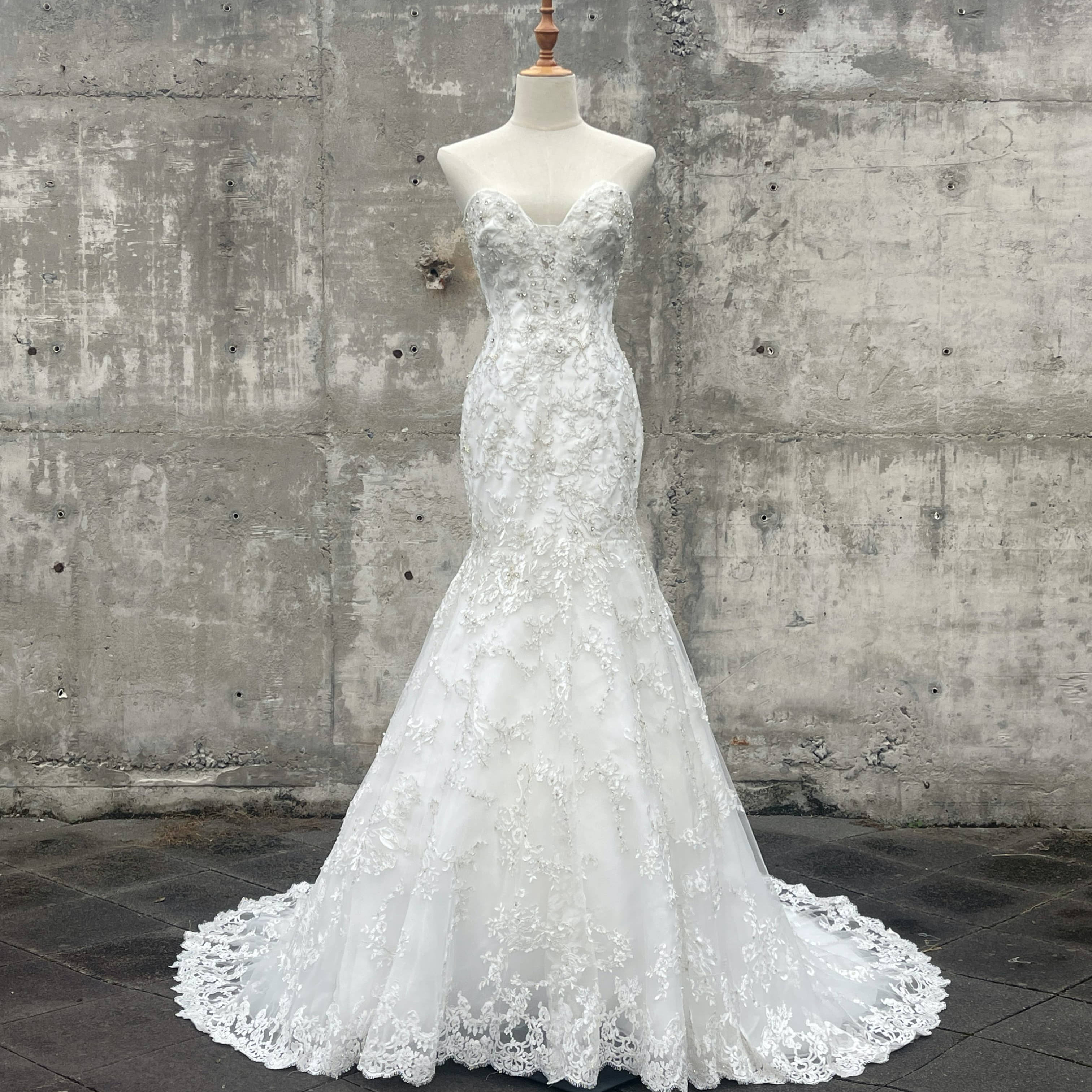2025新款简约抹胸鱼尾婚纱显瘦抹胸拖尾公主法式蕾丝森系主婚纱仙