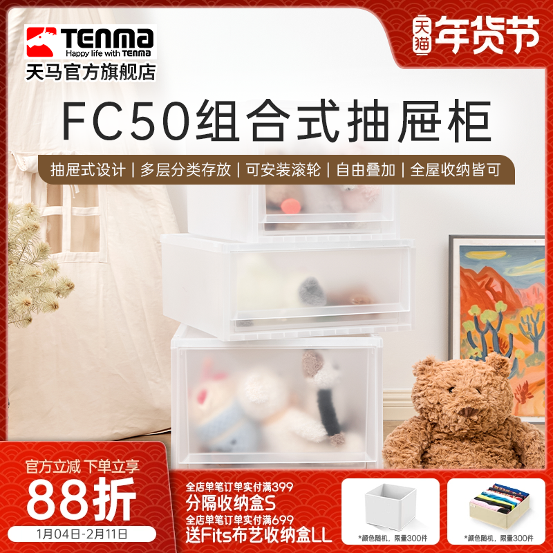 Tenma天马fits收纳箱组合式收纳抽屉柜FC50家用衣服收纳柜整理箱