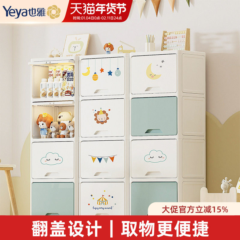 也雅婴儿衣服收纳柜塑料儿童衣柜宝宝玩具储物柜翻盖式柜子置物柜