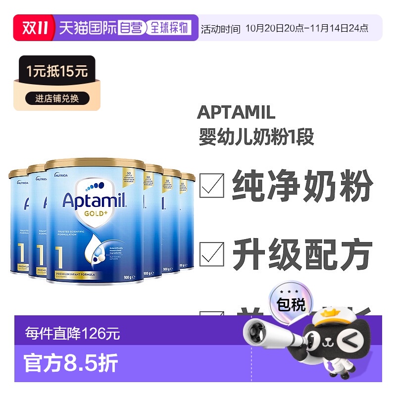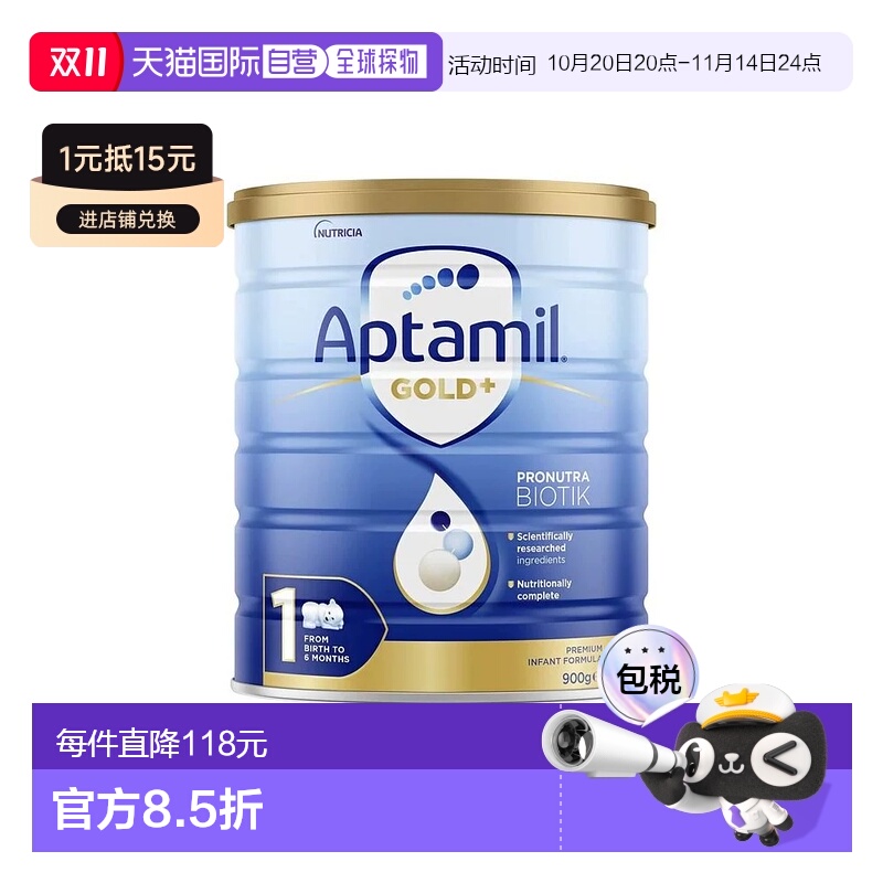 澳大利亚直邮Aptamil爱他美白金版婴幼儿奶粉1段900g0-6个月正品