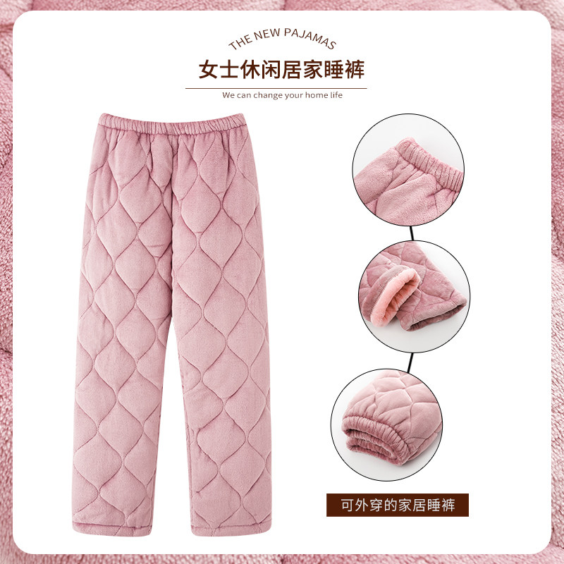 冬季加厚珊瑚绒三层夹棉睡裤女士居家加绒保暖单裤休闲宽松家居裤