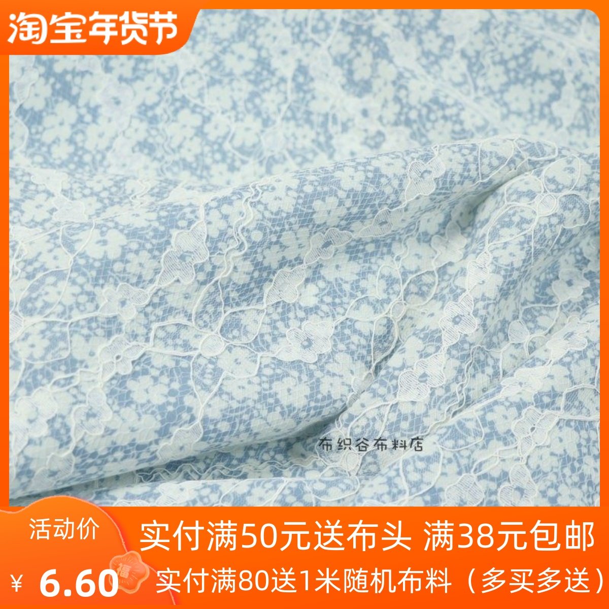 浅灰蓝色绣提花碎花蕾丝雪纺夏季法式田园上衣服装连衣裙发圈布料