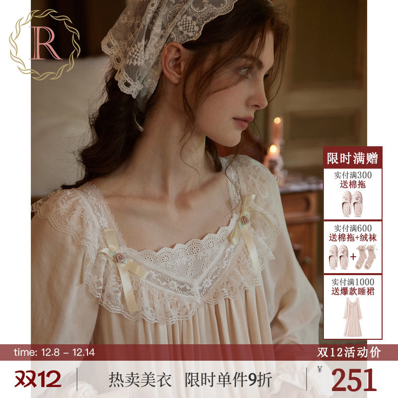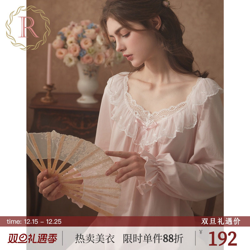 RoseTree宫廷睡裙春秋季女长袖长款蕾丝法式公主风睡衣裙2025新款