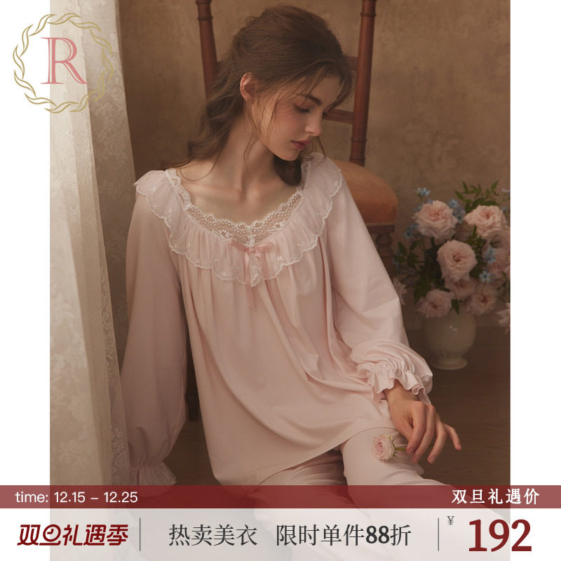 RoseTree宫廷风睡衣女款春秋季长袖蕾丝公主法式家居服套装带胸垫