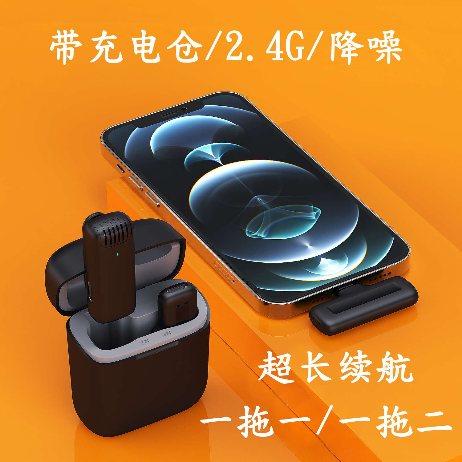 直播语音游戏采访领夹式随身专用手机录音小麦克风带耳机式充电仓