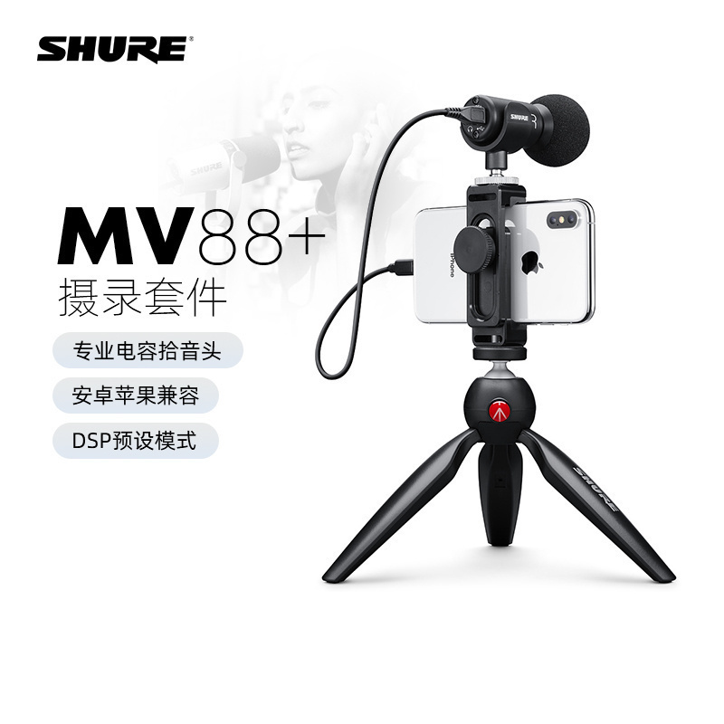 Shure/舒尔 MV88+电容话筒套装电脑手机录音直播vlog便携小麦克风