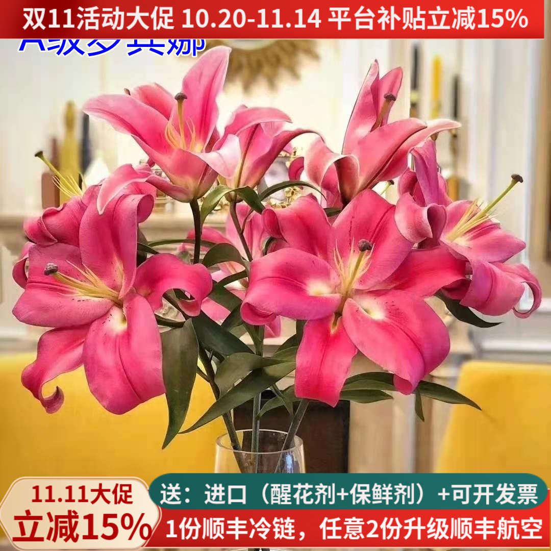 双头罗宾娜香水百合鲜花云南直发斗南花市带花苞发货玫红色百合花