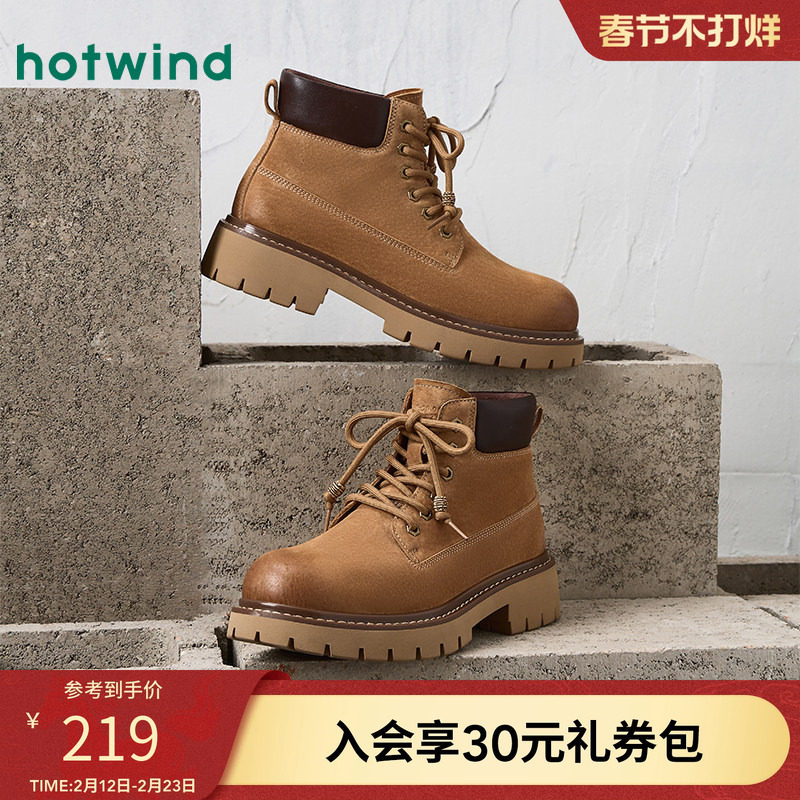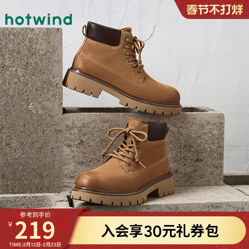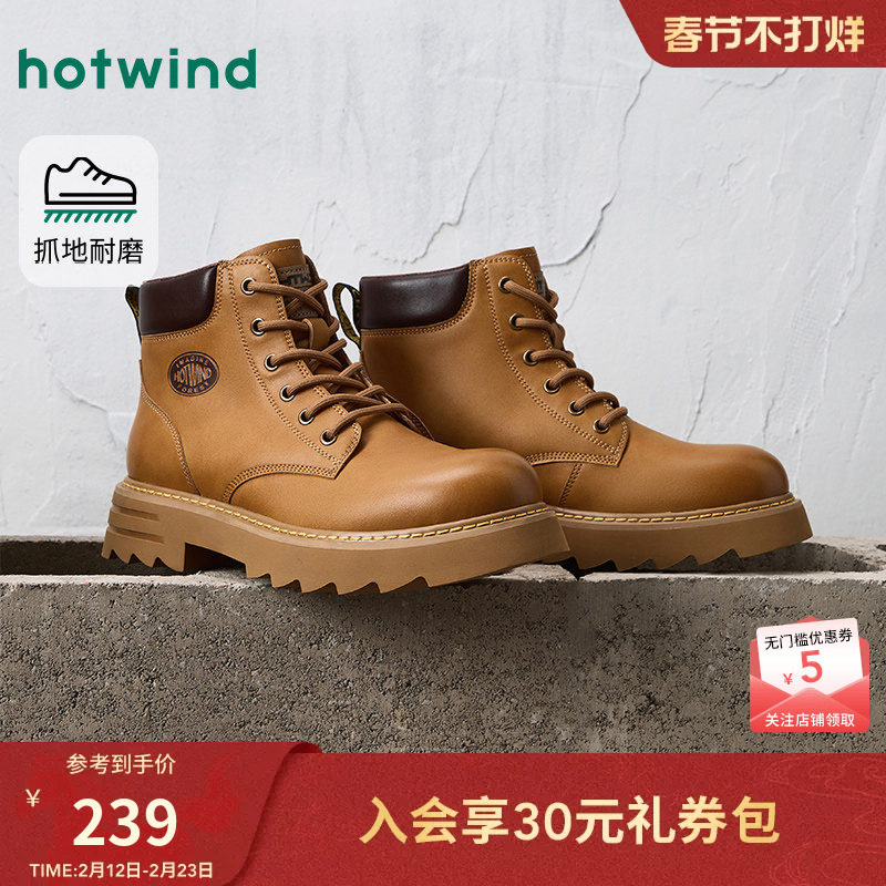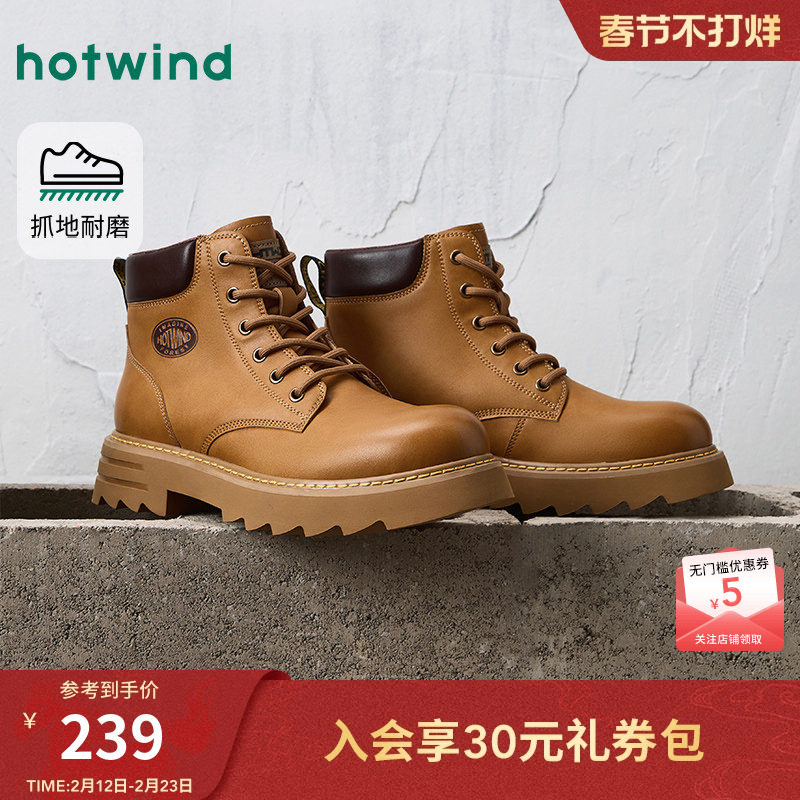 热风男鞋2025年秋季新款男士休闲复古马丁靴百搭短筒男靴厚底靴子