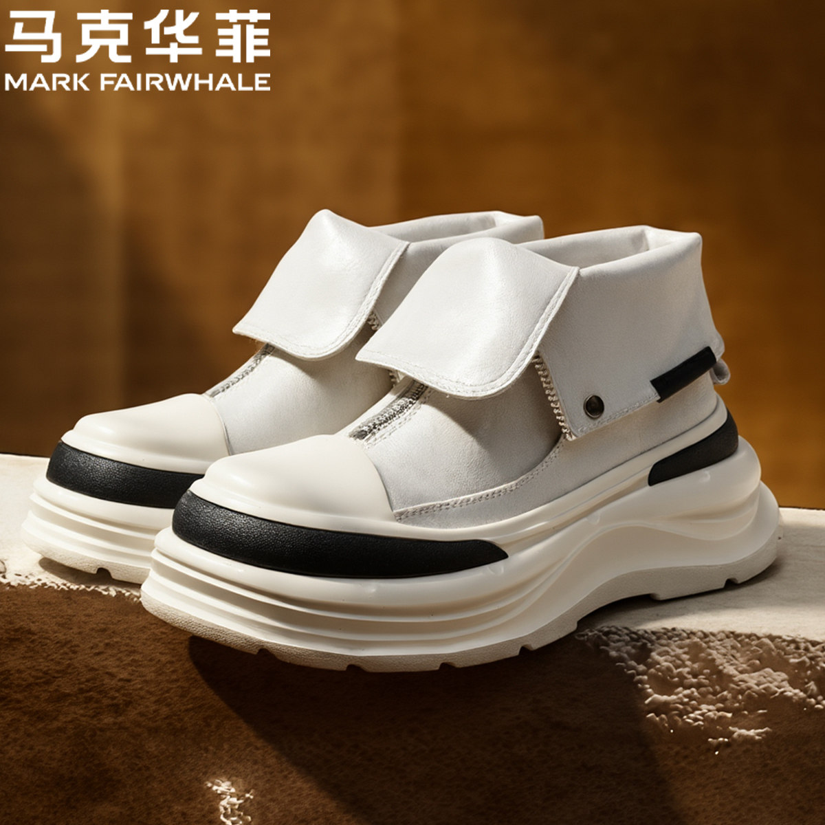 马克华菲男士马丁靴2026新款秋季真皮靴子厚底复古大头靴黑色男靴