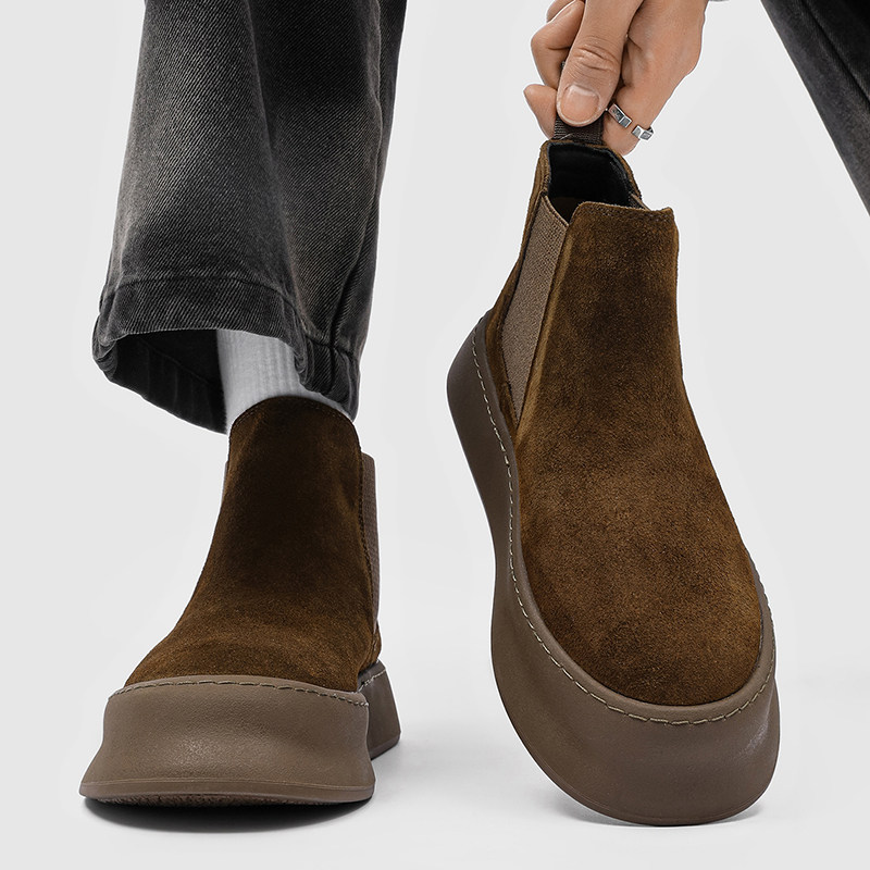 秋季厚底增高马丁靴男英伦风切尔西靴户外休闲中帮短靴翻毛皮男靴