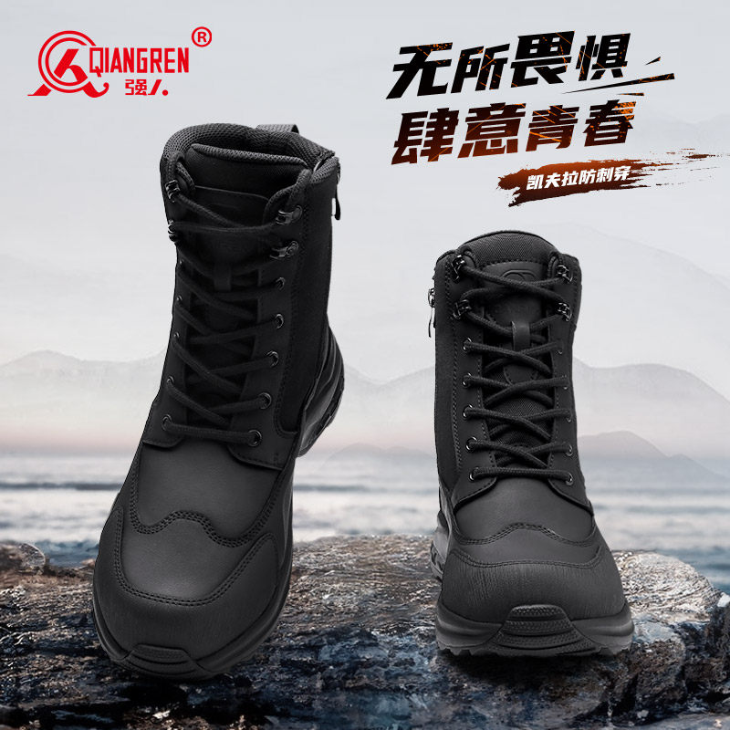 强人3515男靴秋季户外短靴防刺穿战术靴黑色耐磨登山靴黑色侧拉链