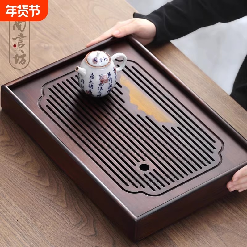 茶盘实木茶海大号长方形托盘花梨木黑檀纹小型茶台家用客厅办公室
