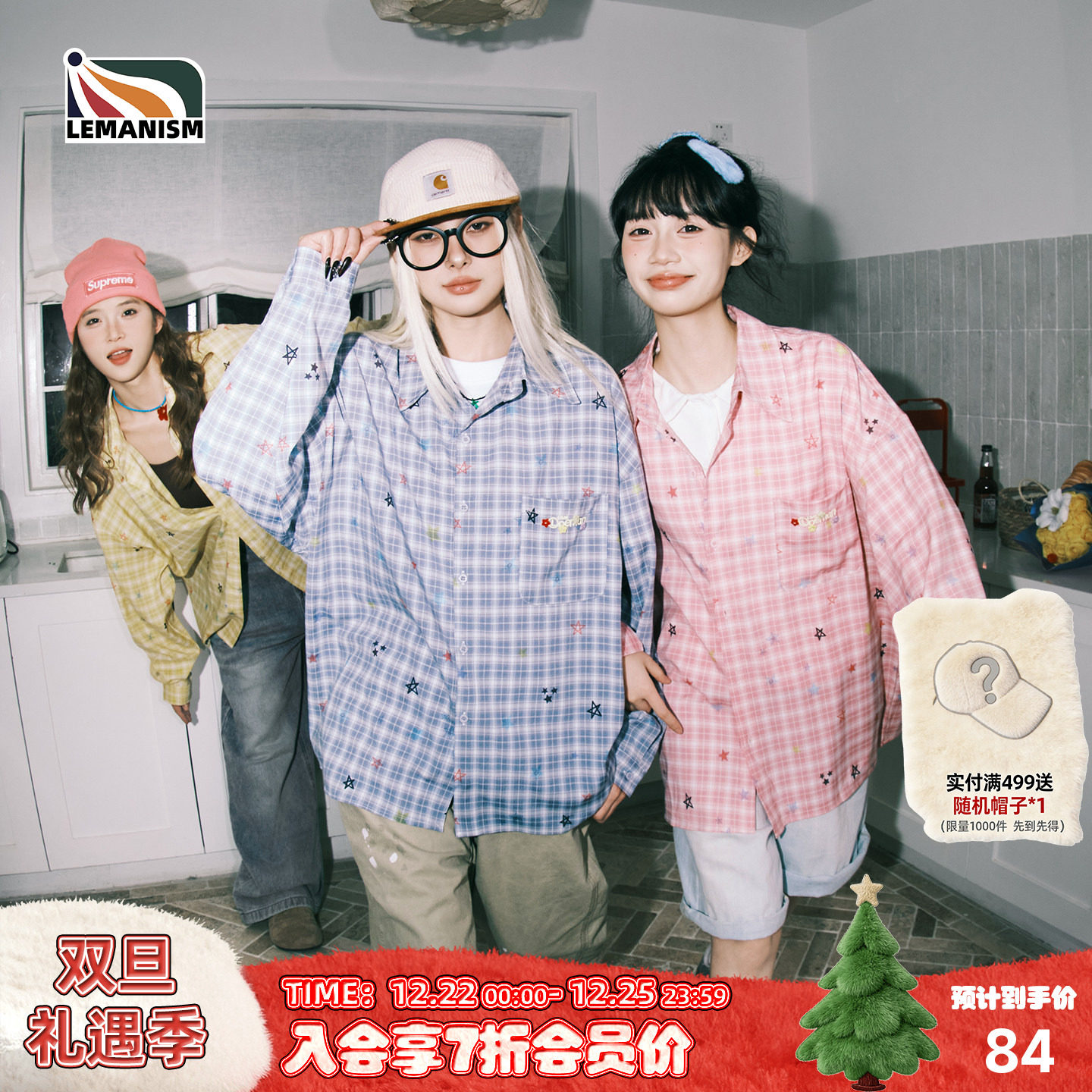 lemanism美式潮牌印花格子衬衫男款2025春秋新款情侣款衬衣女上衣