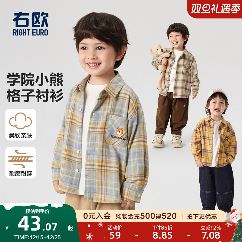 右欧男童格子衬衫女童上衣外套儿童衬衣休闲学院风春秋季新款童装