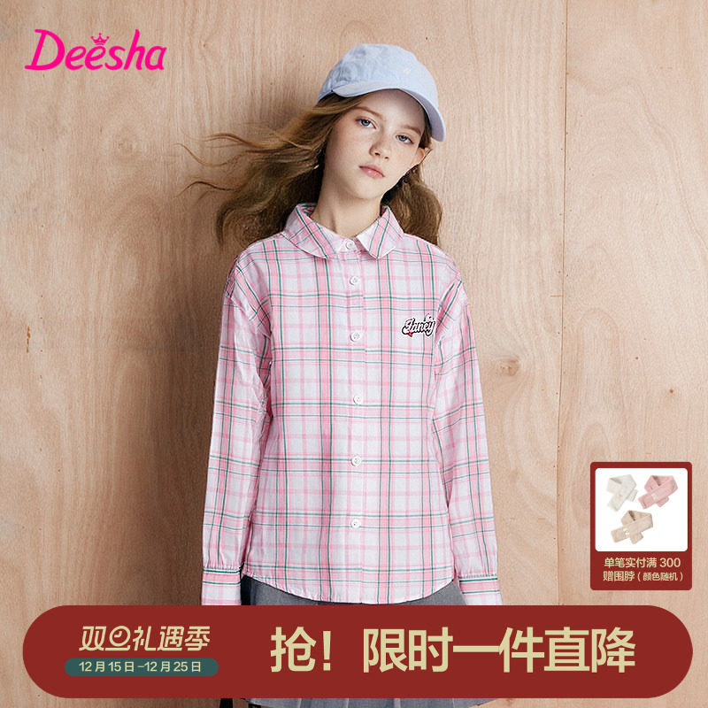 笛莎童装女童纯棉格子衬衫春秋新款大童女孩长袖衬衣儿童外套上衣