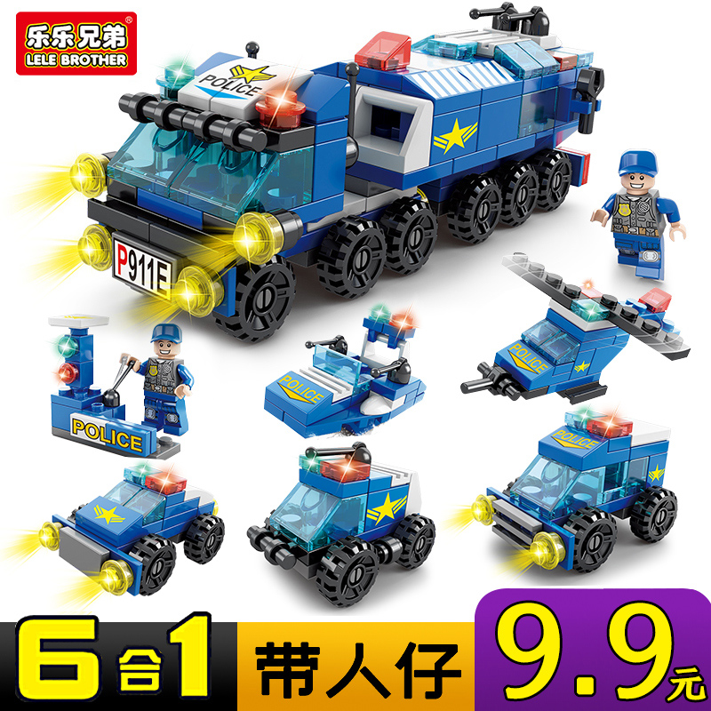 启蒙拼装积木警察6合1益智变形男孩玩具机器人金刚儿童节日礼物