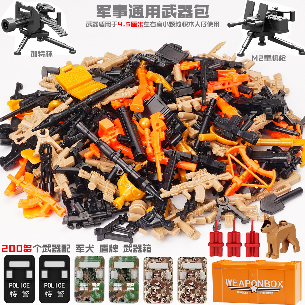 兼容益智特种兵军事人仔上色武器包印刷双色积木警察拼插塑胶玩具