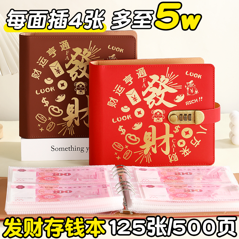 密码锁存钱夹钱册记账现金存钱本2025新款放10万百元钞票人民币纸币钱币收藏高颜值收纳包儿童压岁钱存钱神器