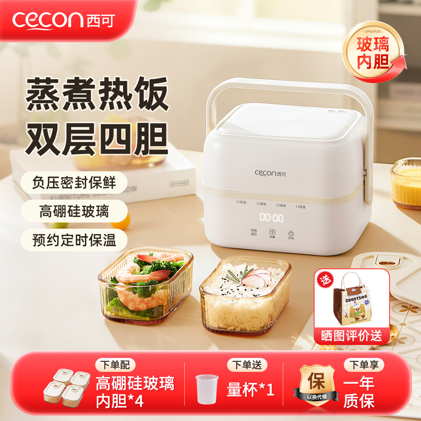 华柏仕电热饭盒保温可插电加热自热蒸带饭菜热饭神器办公室上班族