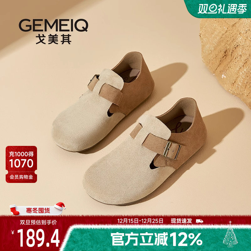 戈美其商场同款真皮全包勃肯鞋女2025新款春秋百搭软底平底单鞋子