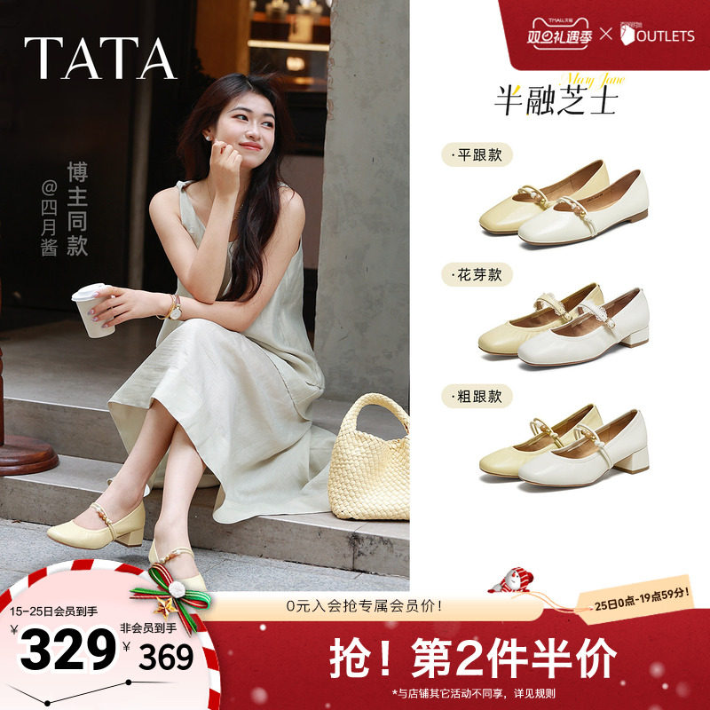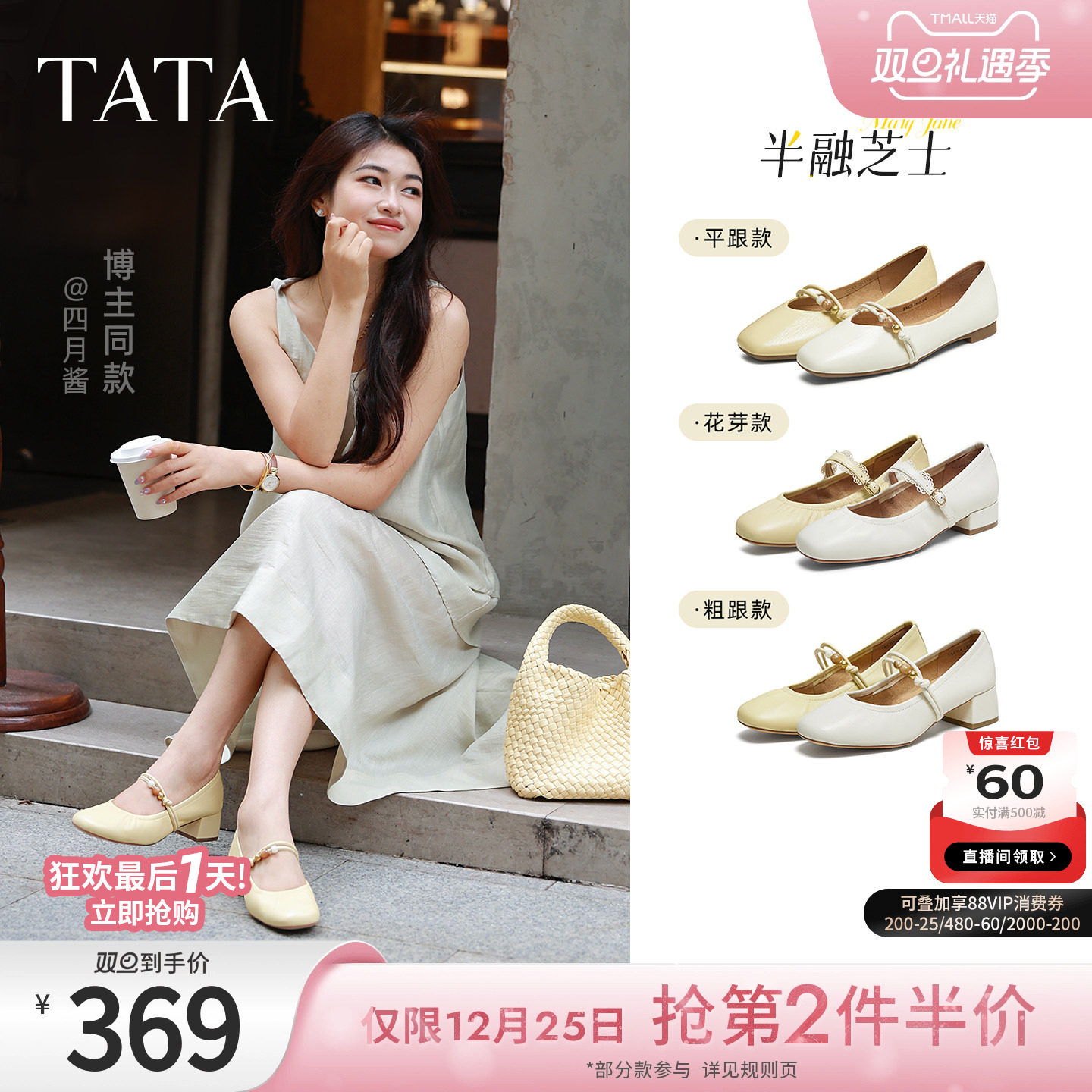 TATA他她女鞋半融芝士秋浅口平底单鞋子气质羊皮玛丽珍鞋7ACE4CQ5