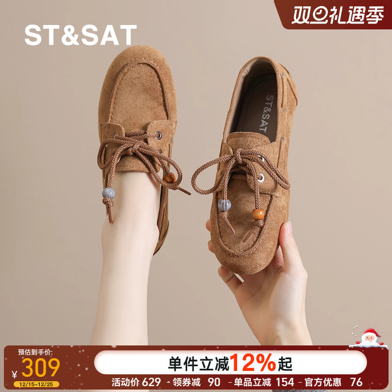 星期六豆豆鞋复古乐福鞋女2025秋季新款帆船鞋平底单鞋子休闲舒适