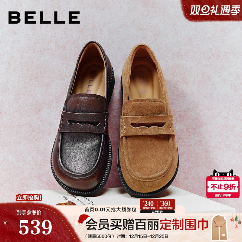 百丽复古海鸥乐福鞋女2026春季新款真皮小皮鞋平底单鞋子F2E1DAA6