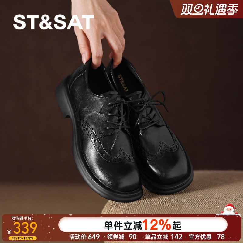 星期六乐福鞋女2025新款秋冬女鞋英伦风黑色小皮鞋深口平底单鞋子