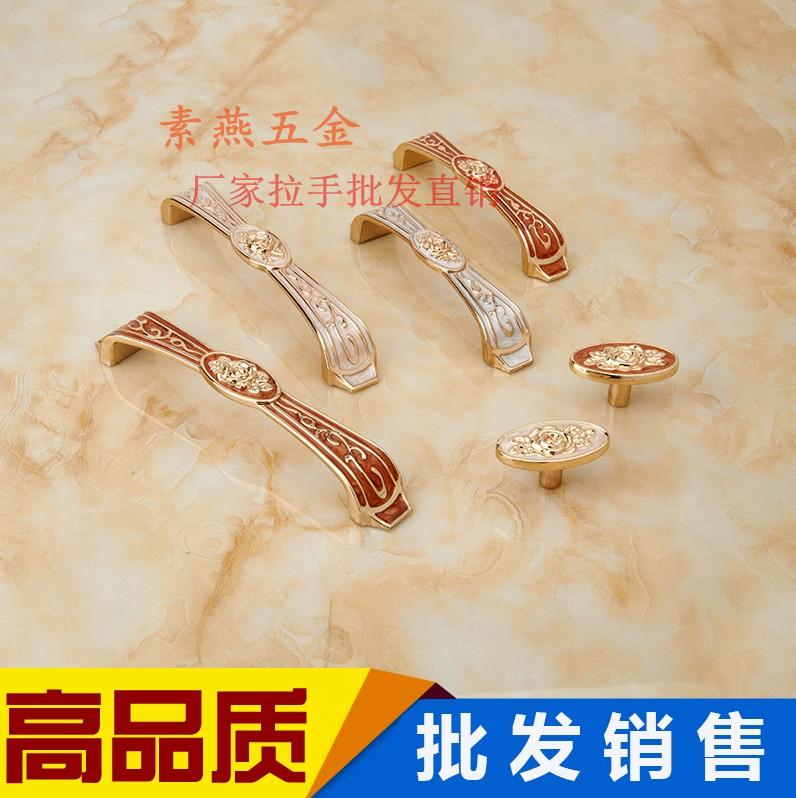 金色象牙白拉手 欧式大衣柜橱柜门拉手 128孔 小拉手玫瑰花拉手