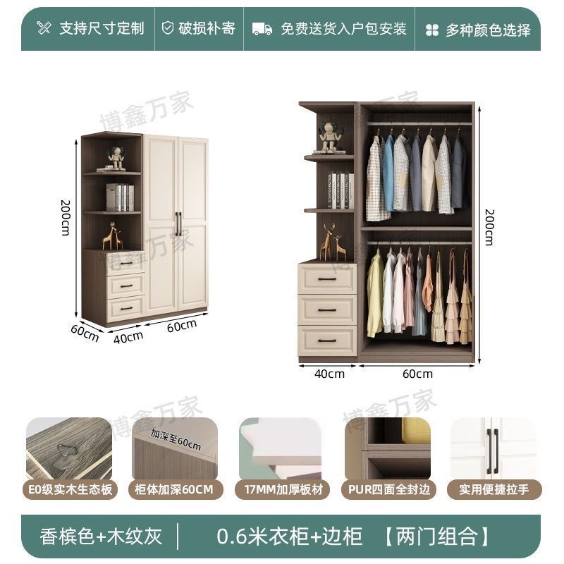 衣柜简约现代经济型家用卧室整体组合欧式实木质出租房大衣橱组装