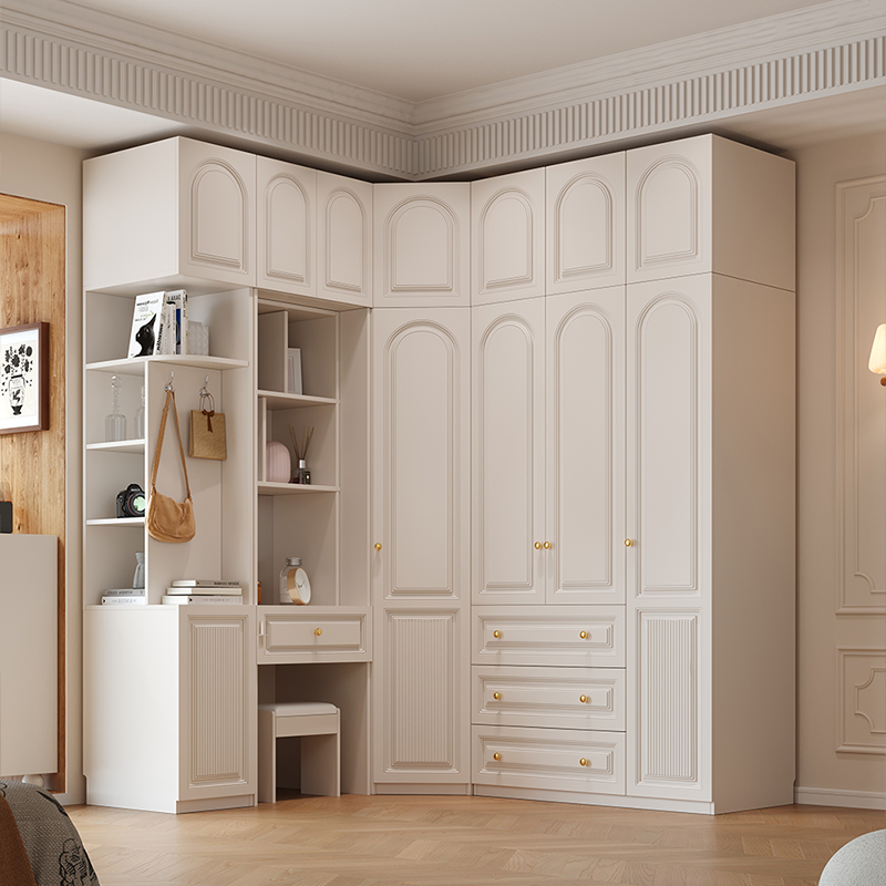 轻法式奶油风主卧大衣柜90度转角一体靠墙家用卧室欧式大户型现代