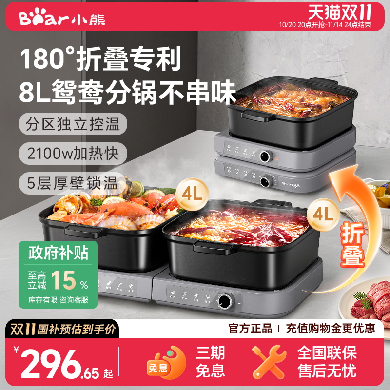 小熊电火锅鸳鸯锅火锅家用分体式电锅专用火锅多功能烹饪机料理机